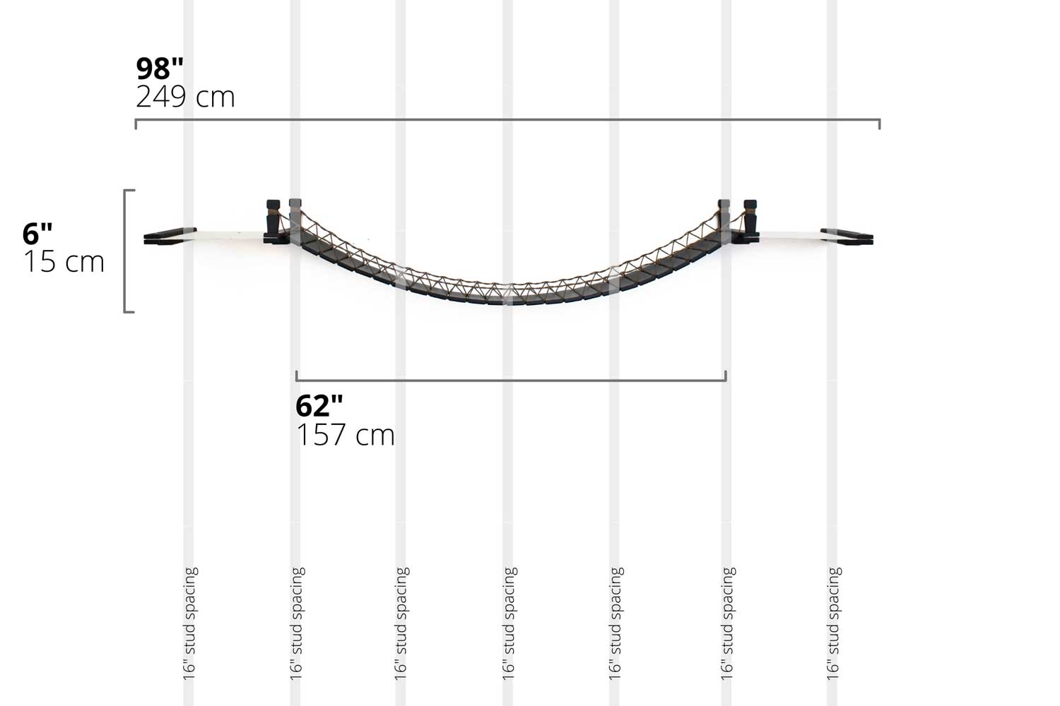 The 66″ Cat Suspension Bridge spans 7 studs at 16″ apart.