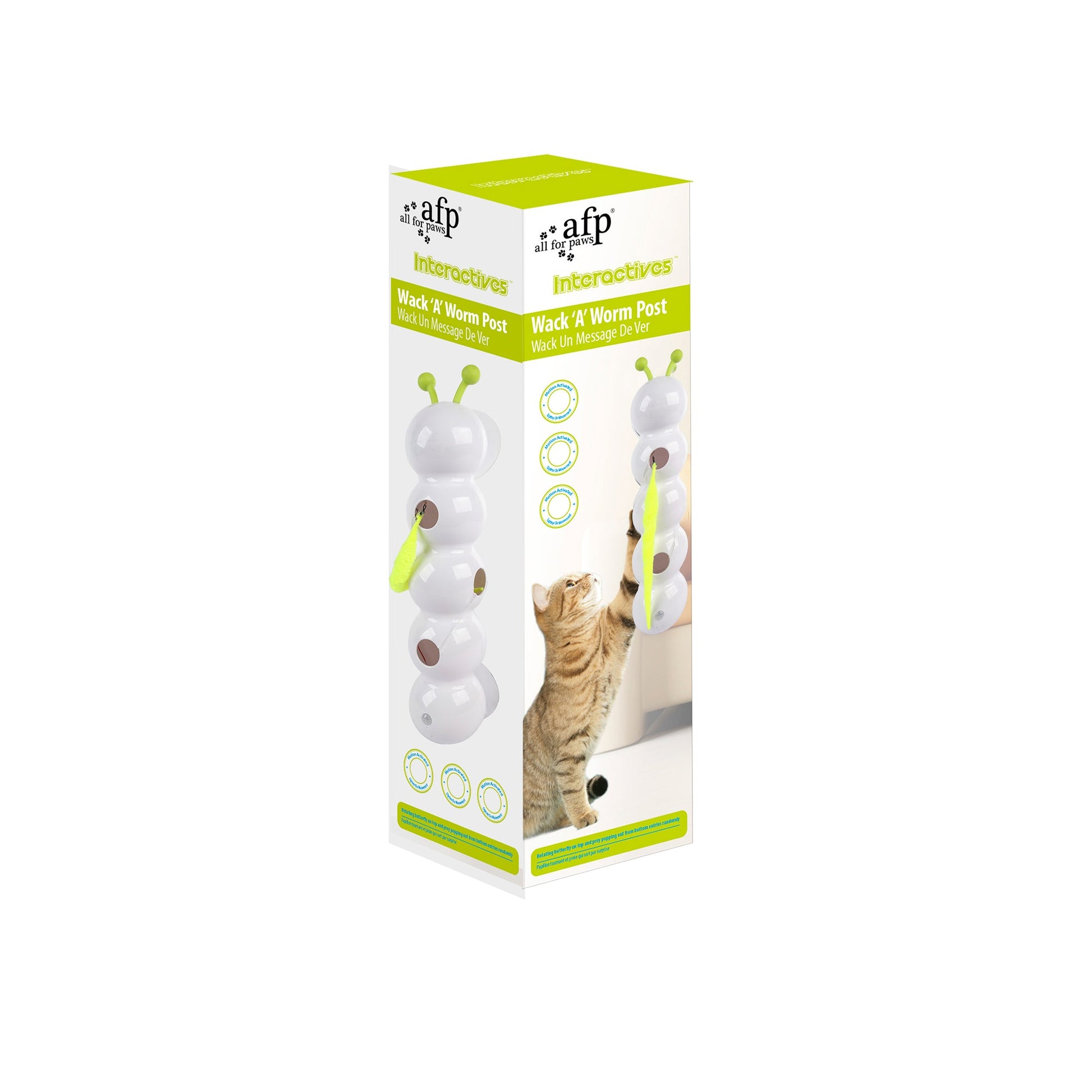The All For Paws Interactive Wack’A’Worm Post features a realistic caterpillar design with unpredictable movements. Its fluffy tail darts through holes, mimicking live prey to instantly trigger your cat’s hunting instincts and provide endless, engaging play. - Versatile & Space-Saving Mounting