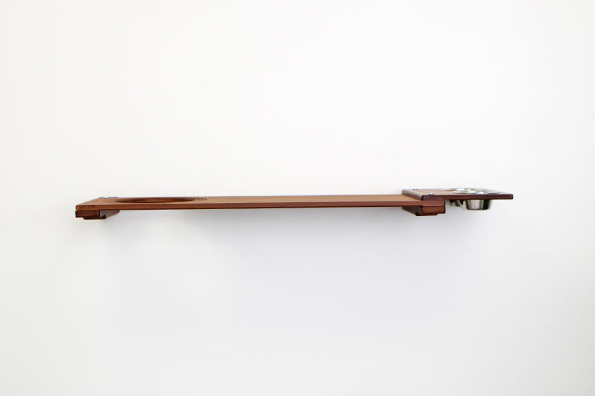 Elevate your cat’s dining experience with a wall-mounted Cat Feeder. The Feeder Shelf provides your cat with a sleek place to eat and relax while safely watching the hustle and bustle of the house. There are several ways to incorporate a Feeder into your cat wall layout. These Feeder Shelves can be purchased as a standalone Feeder, or with an 18” or 34” Shelf. You can also order the Feeder attachment by itself to combine it with an existing mounting point. Offering a quick route down to exercise after that big meal, the Feeder Escape hatch provides an irresistible jump to the next activity.